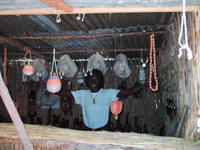 We verblijven iets verderop dan het vissersdorp. Sinds Mauritanië zijn de bootjes steeds in felle kleuren geschilderd en vooraan ogen, ik veronderstel dat het een geluksbrenger is, maar ik stel geen verdere vragen. Het Frans wordt veel gesproken maar de omgangstaal in de bevolking is Wolof. Wij zijn de toubabs en we zullen het geweten hebben, zolang we in Senegal zijn. In het begin vraag je je af of het vriendelijk of kwaadaardig bedoeld is, maar het hangt af van de intonatie. Maar zoals gewoonlijk zijn het de kinderen die roepen :" Toubab, toubab" en dat is eerder vriendelijk.