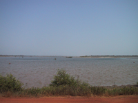 We overnachten bij de Lac Rose. Ik heb zin om te baden want het water is even zoutig al de Dode Zee en dat moet een speciaal effect hebben om te zwemmen, maar de grond is kleverig en de helling is zwak.
