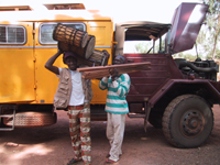 Hij komt Isabelle afhalen aan de luchthaven. Uiteindelijk, in het begin van de namiddag, vertrekken we met een camion in perfecte staat.