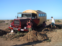 essai, cris de joies, le camion sort. Ouf ! Notre voyage
